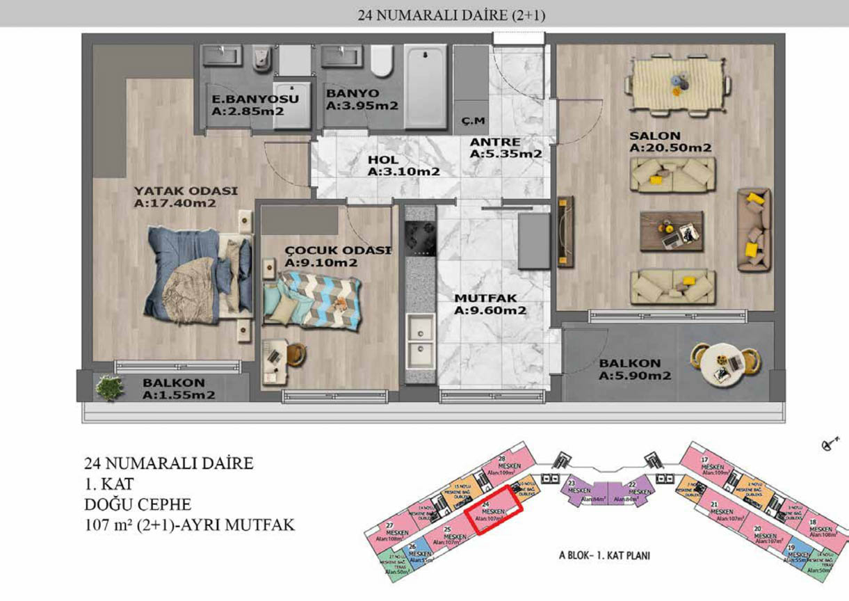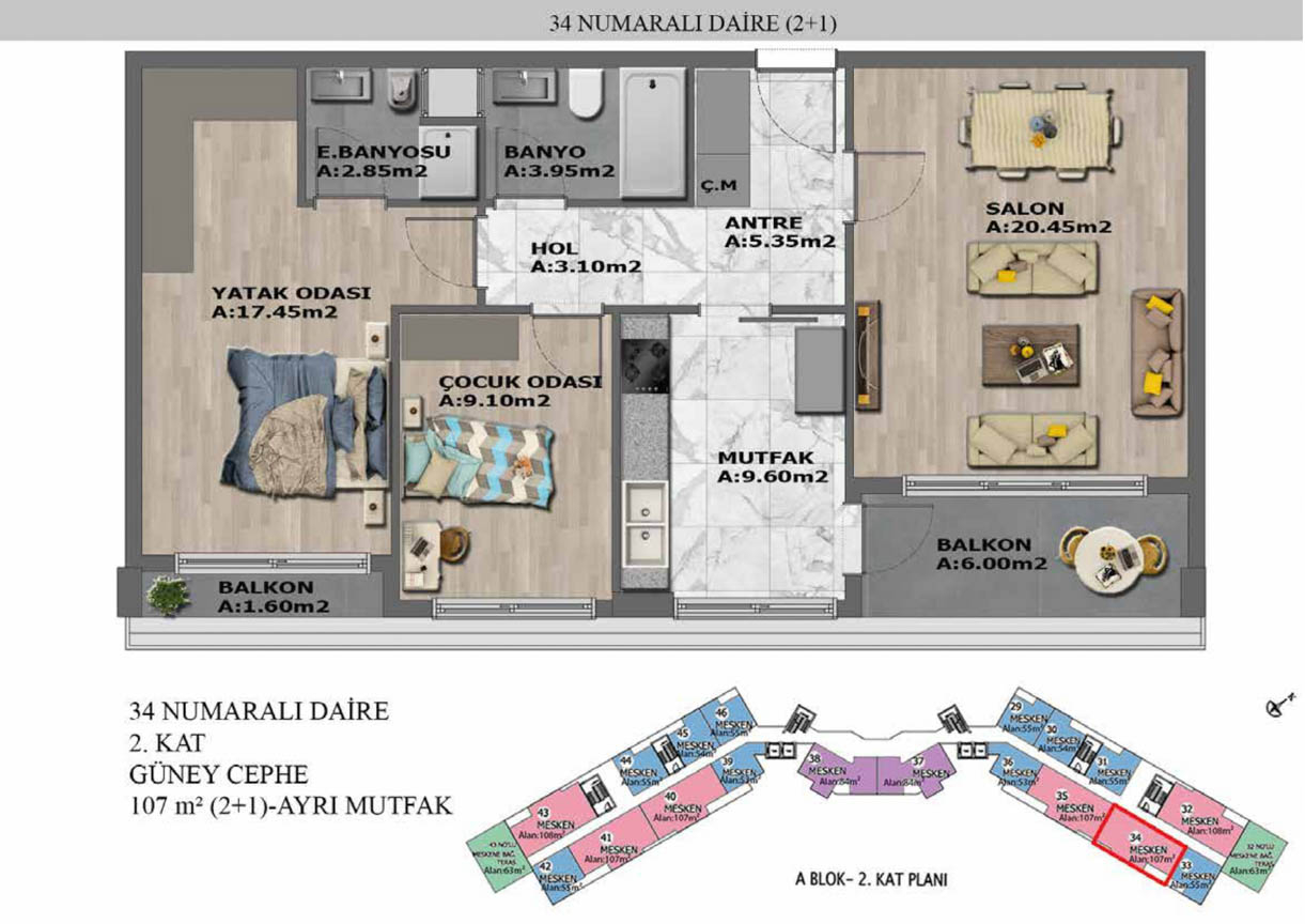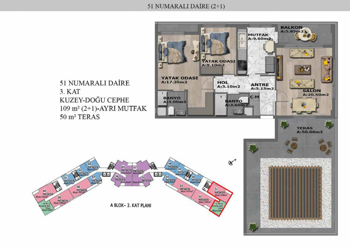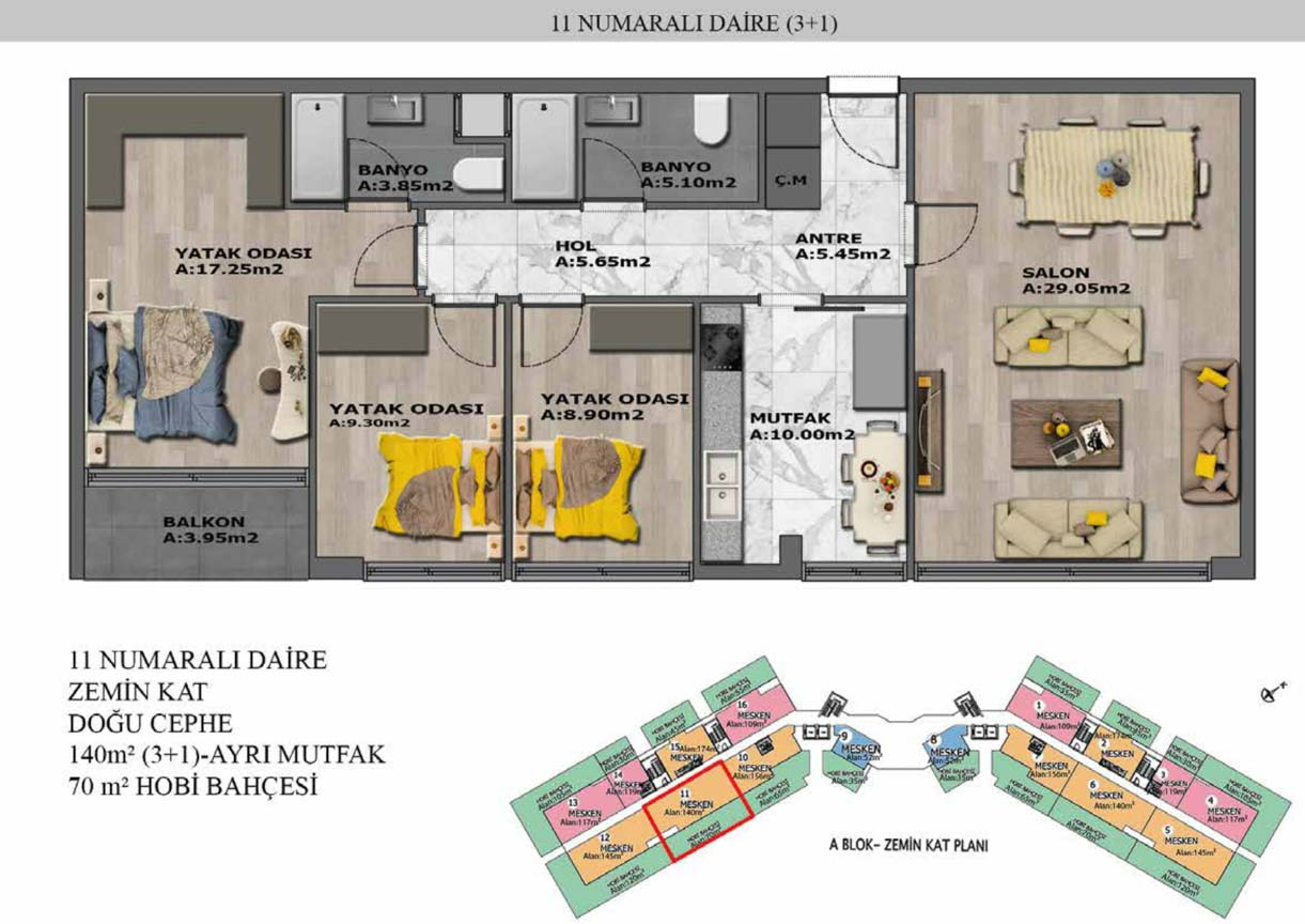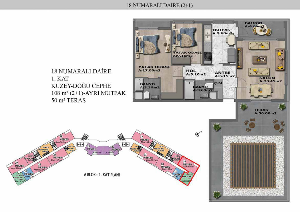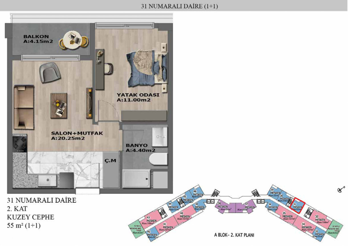 Yaşam alanlarının ölçülü, işlevsel ve estetik dağılımını detaylı şekilde inceleyin.