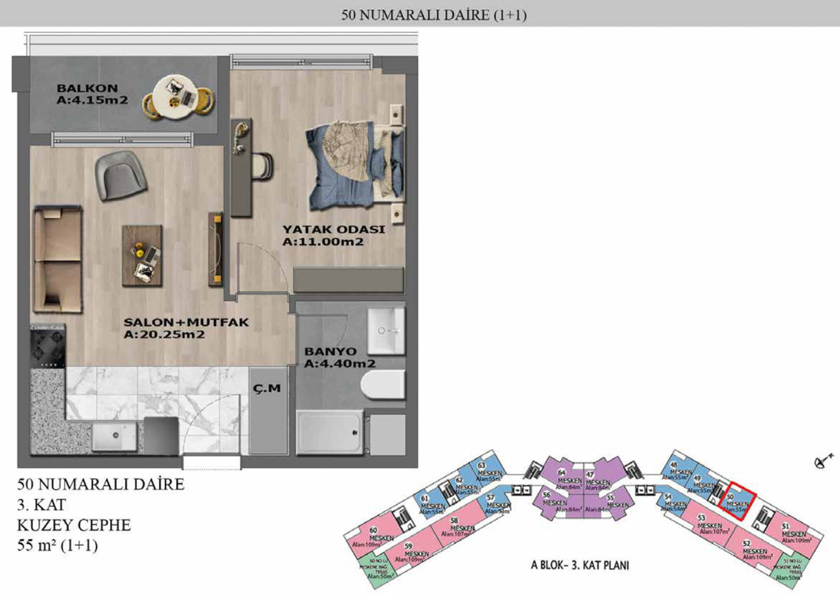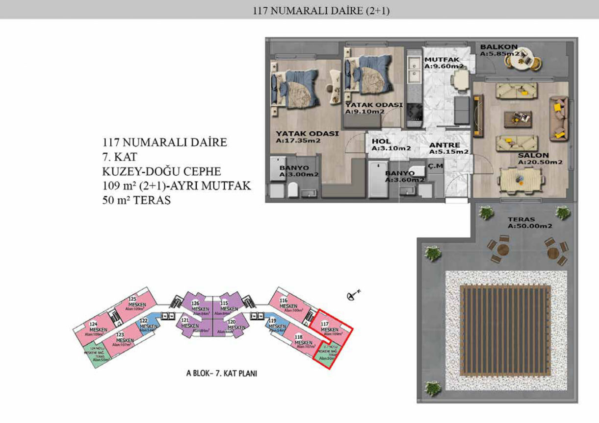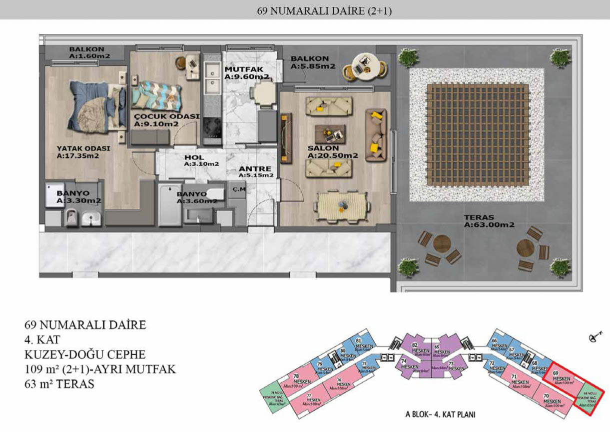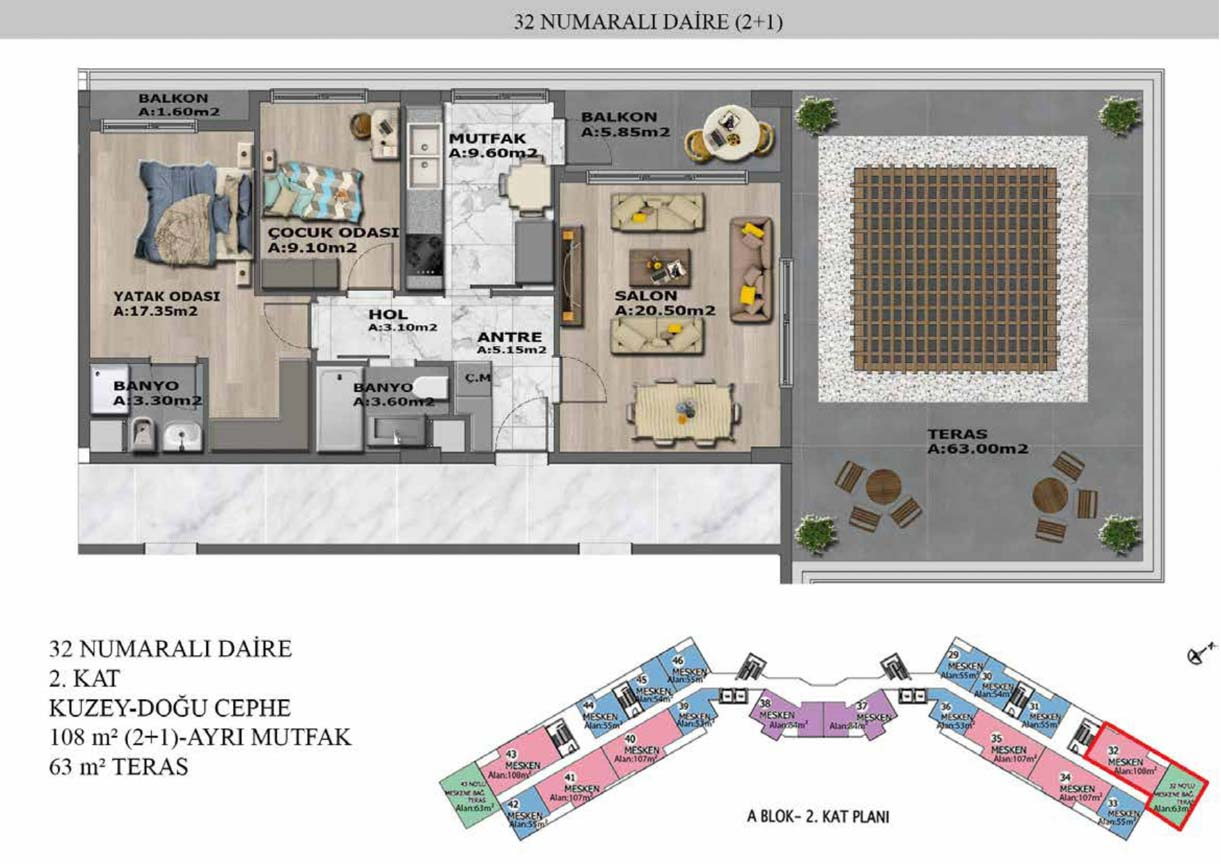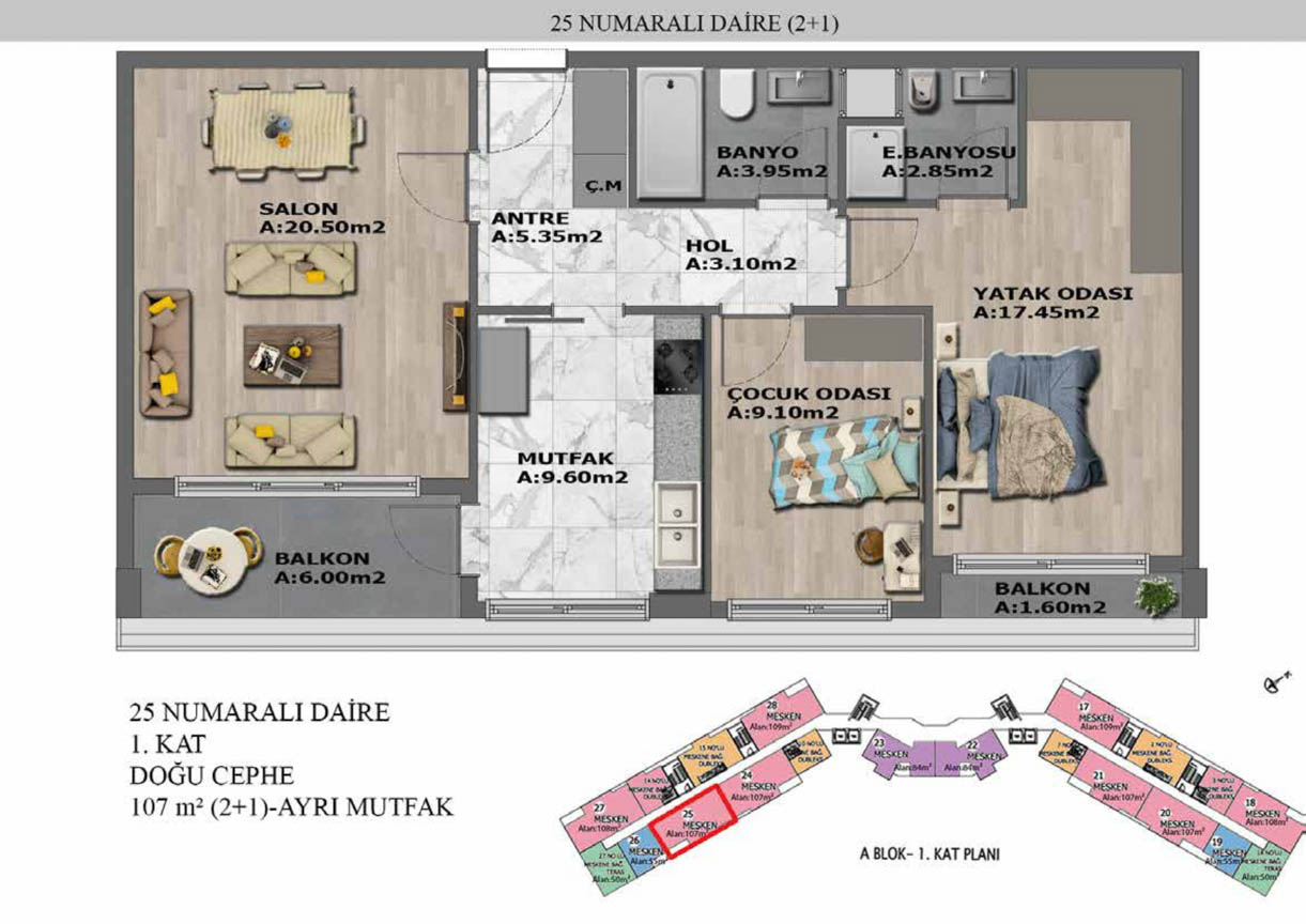 Yaşam alanlarının ölçülü, işlevsel ve estetik dağılımını detaylı şekilde inceleyin.