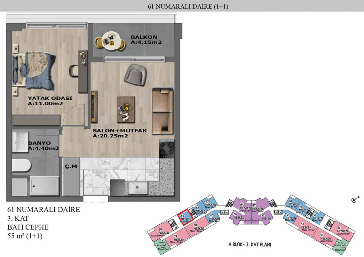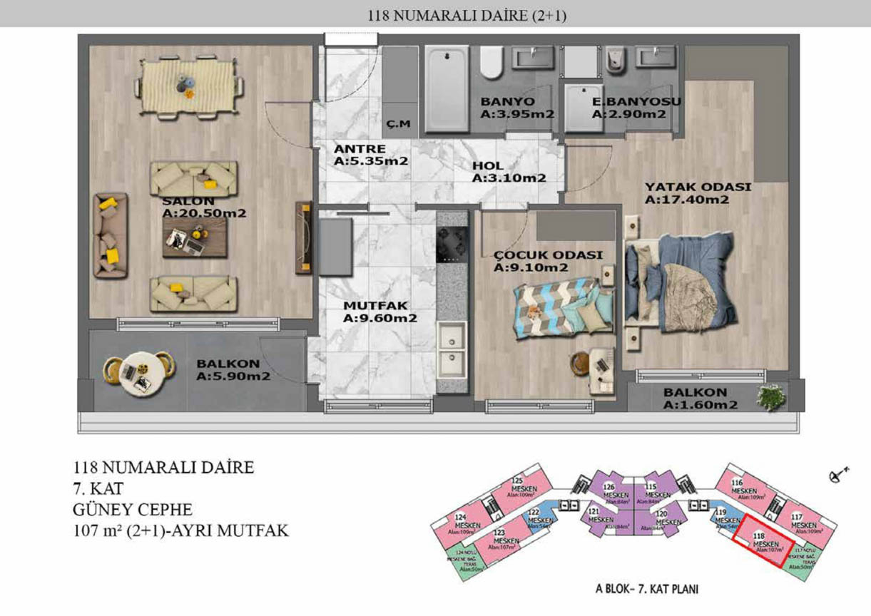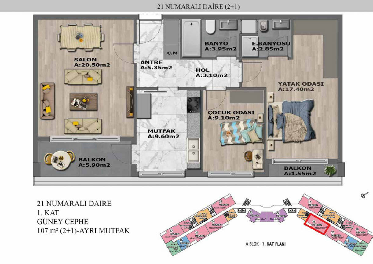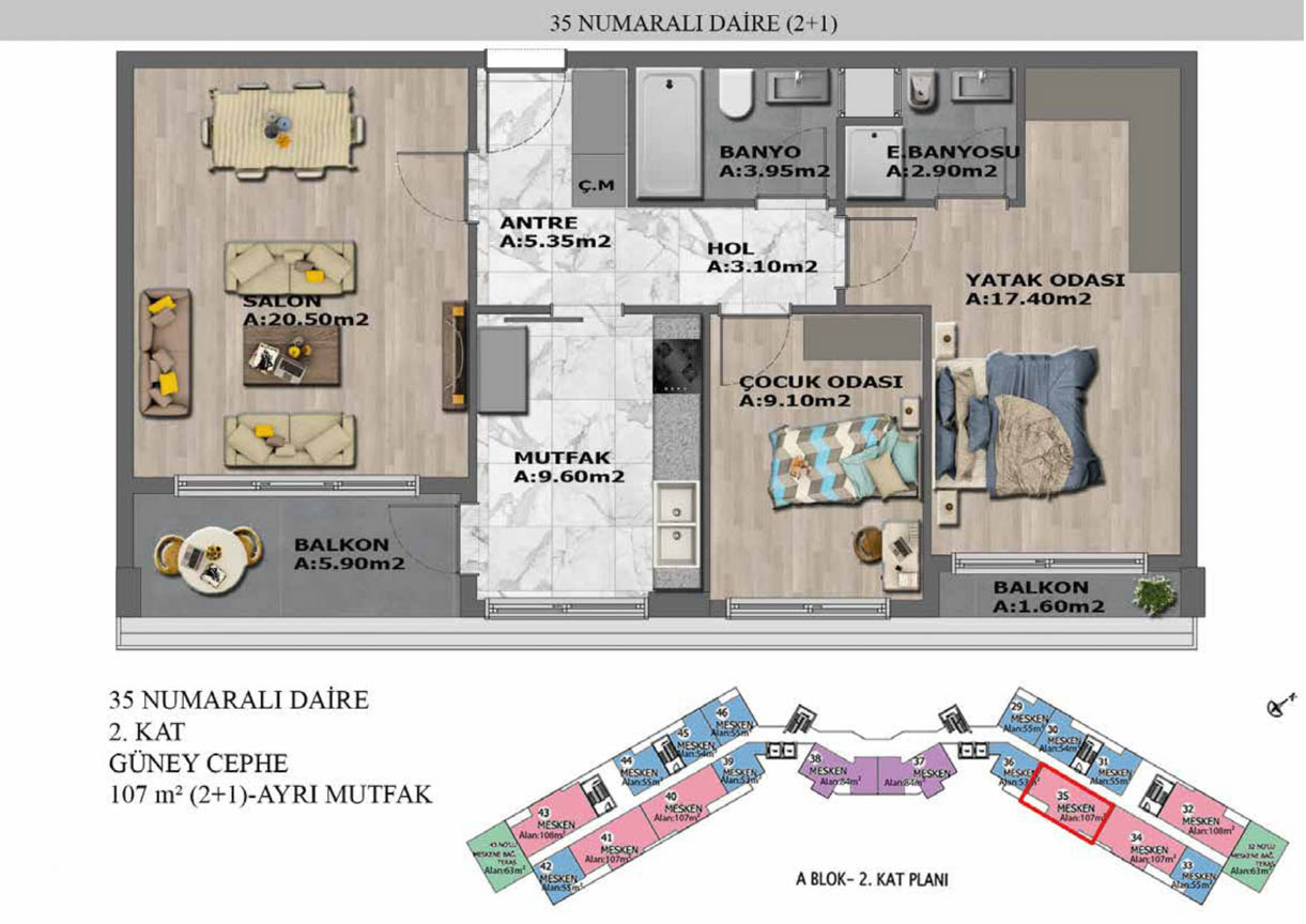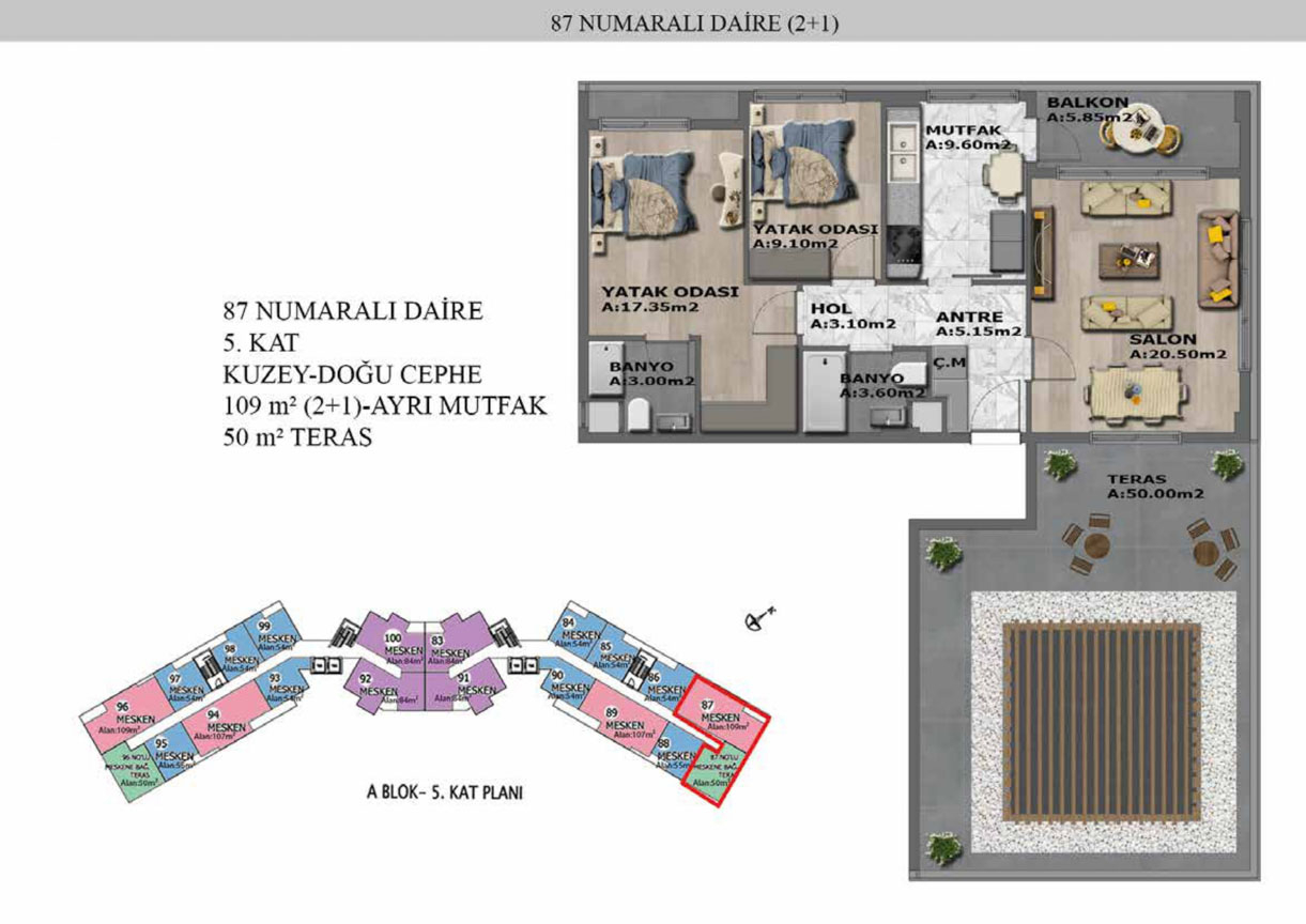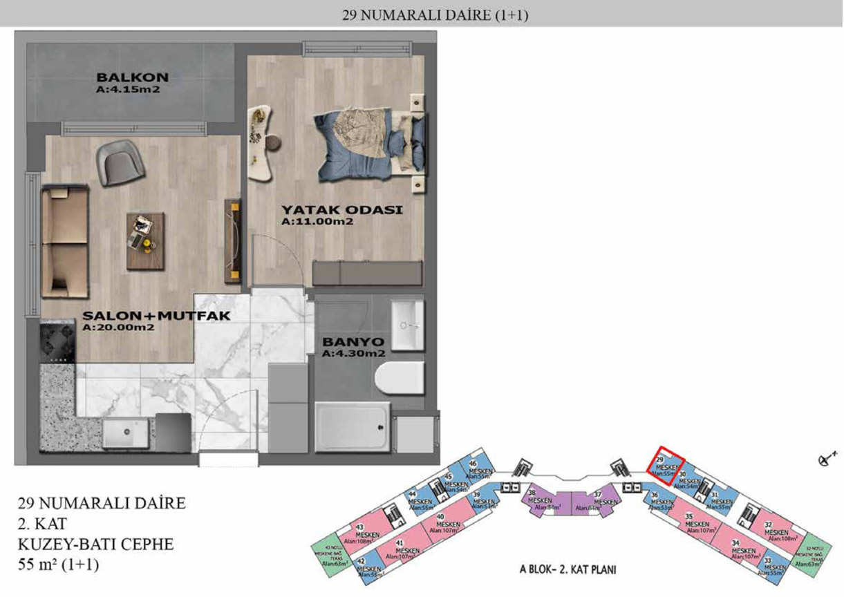 Yaşam alanlarının ölçülü, işlevsel ve estetik dağılımını detaylı şekilde inceleyin.
