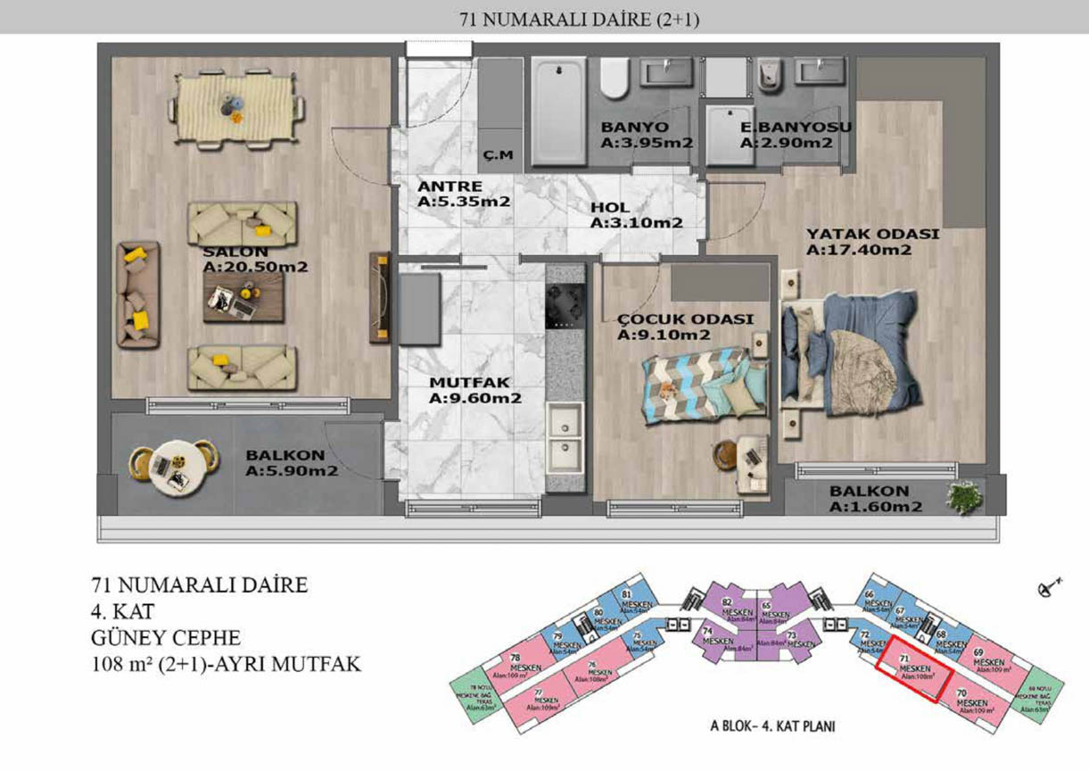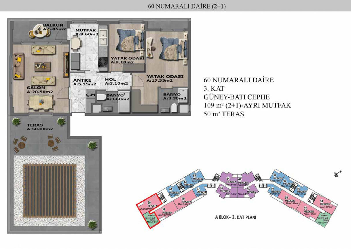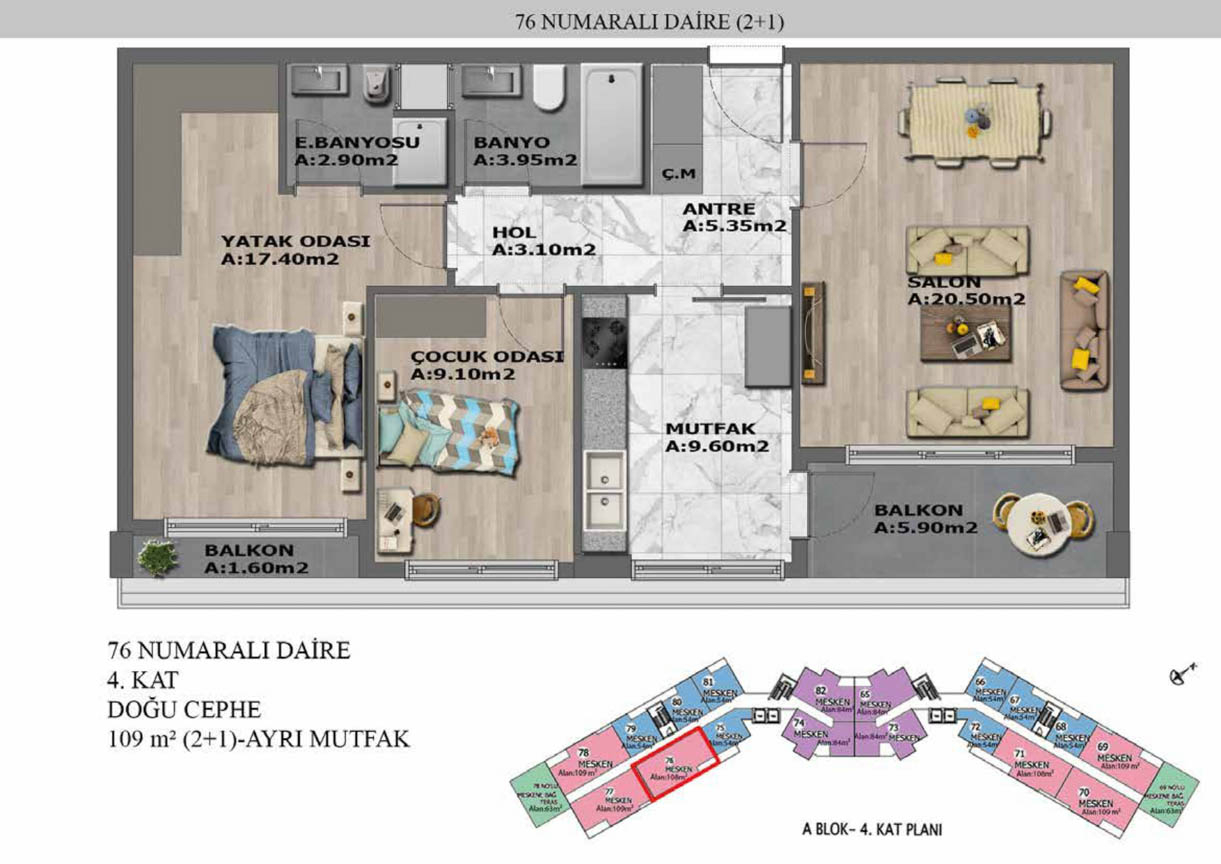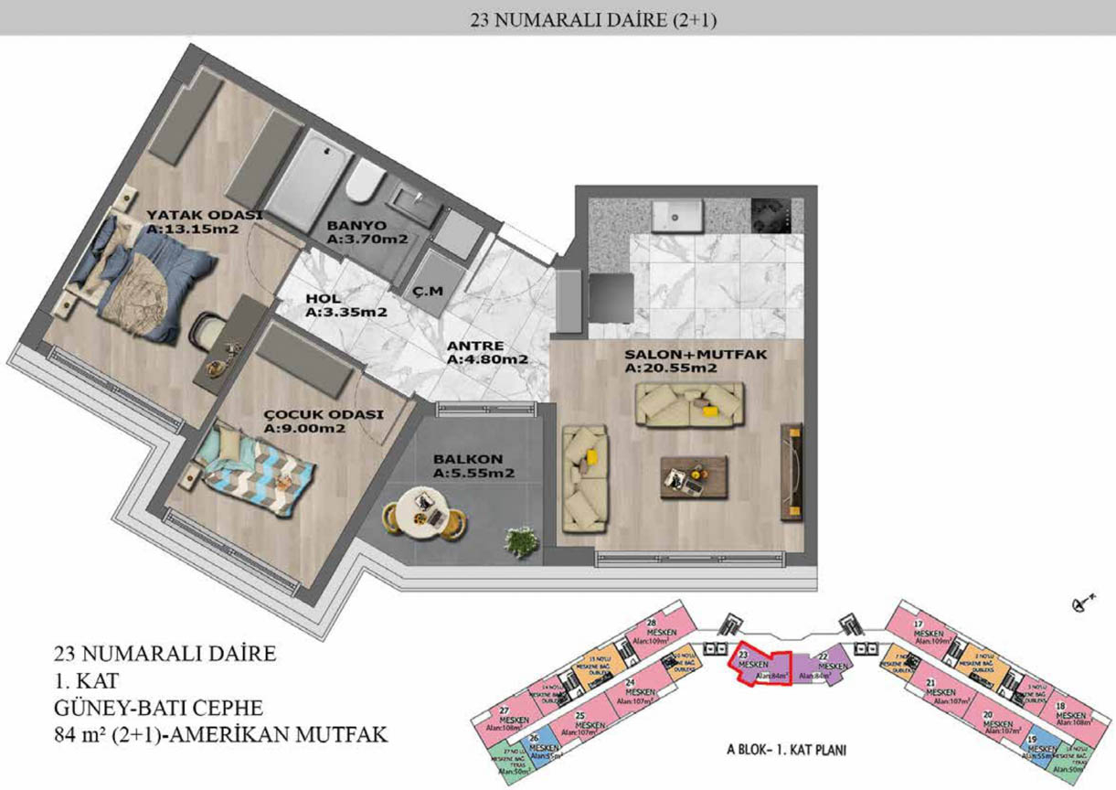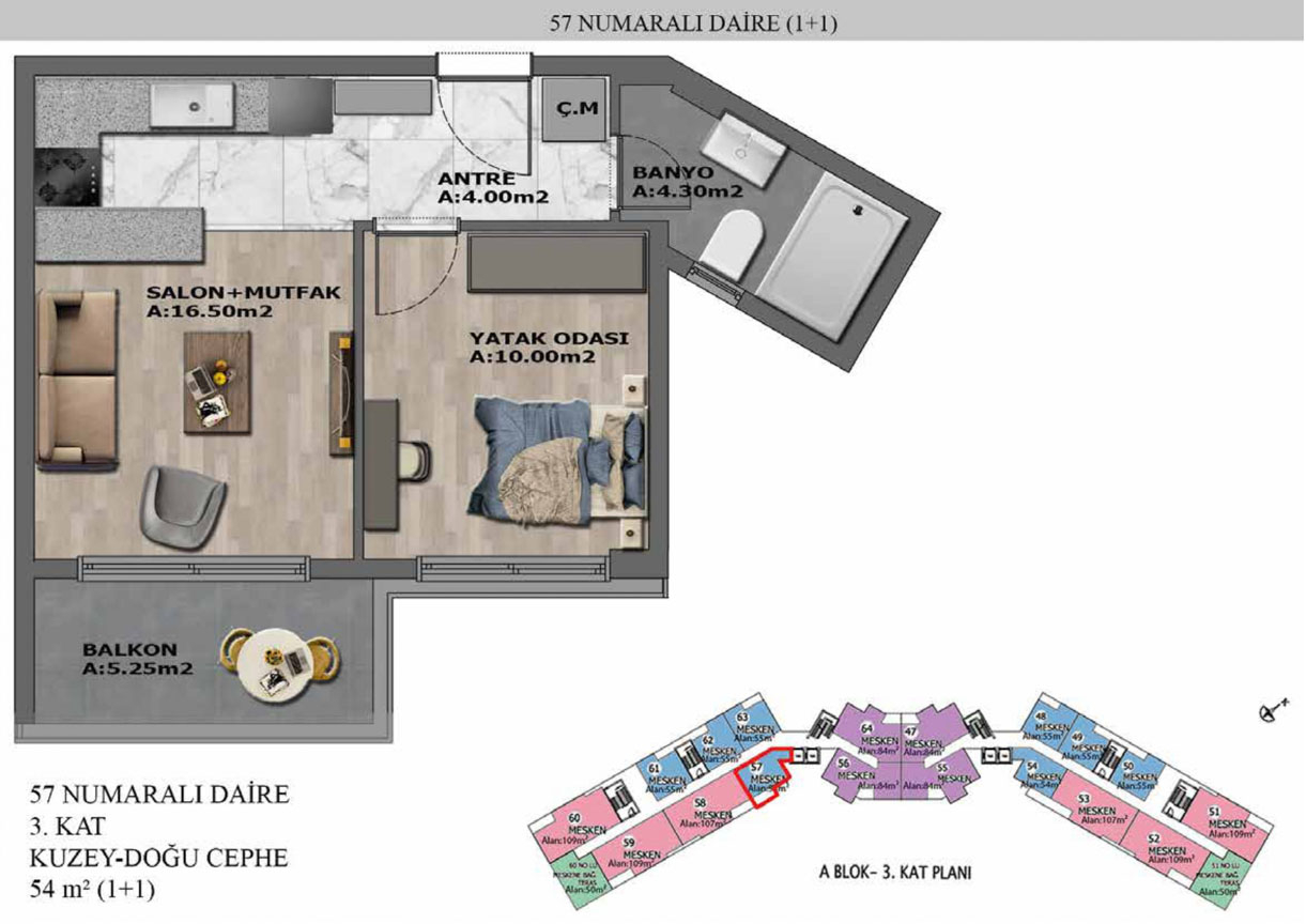 Yaşam alanlarının ölçülü, işlevsel ve estetik dağılımını detaylı şekilde inceleyin.