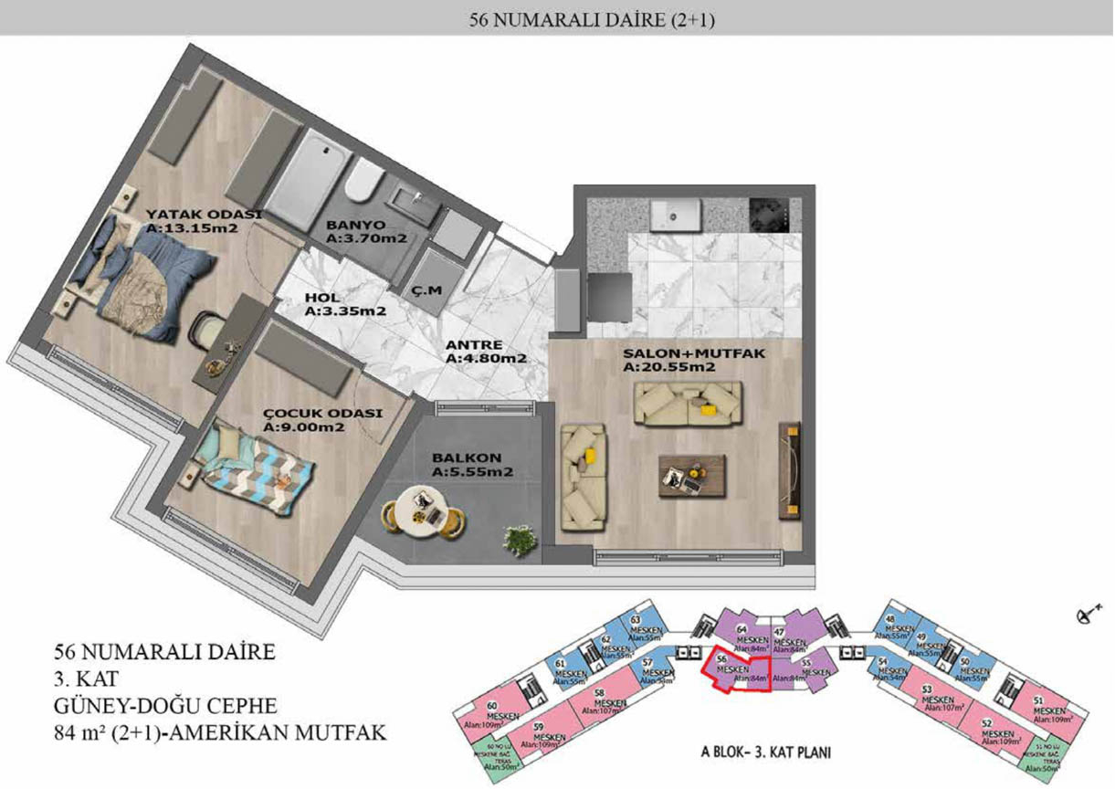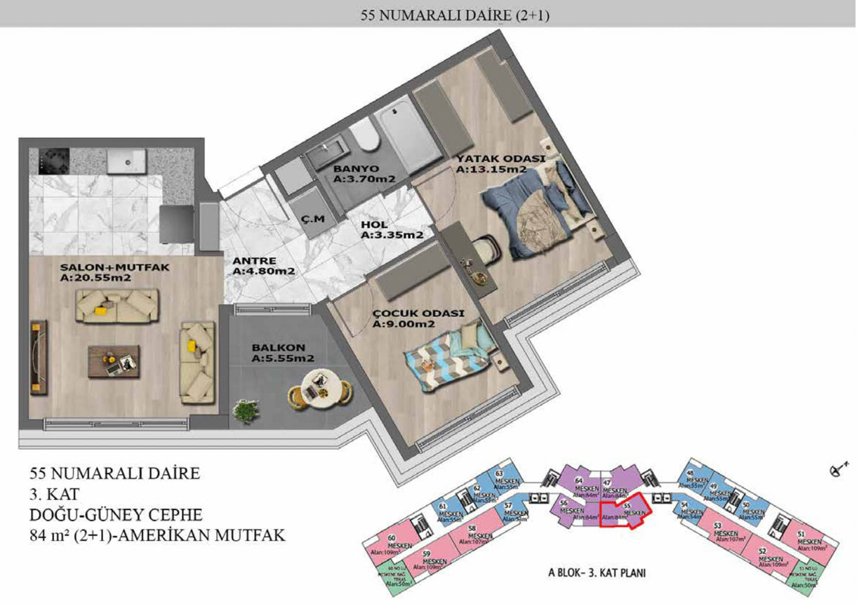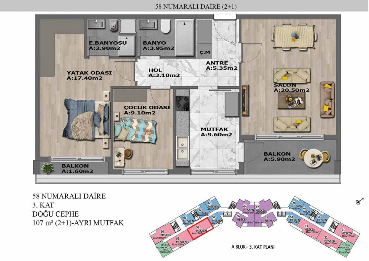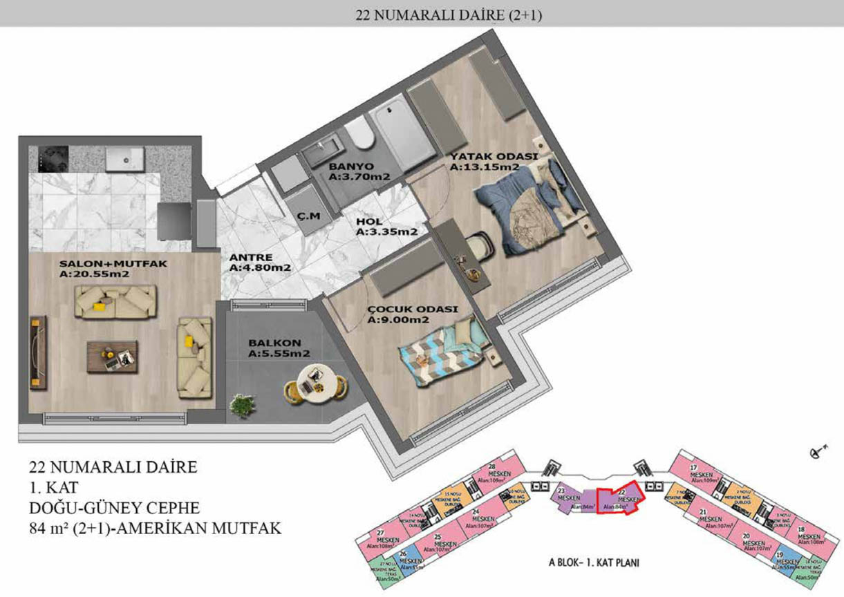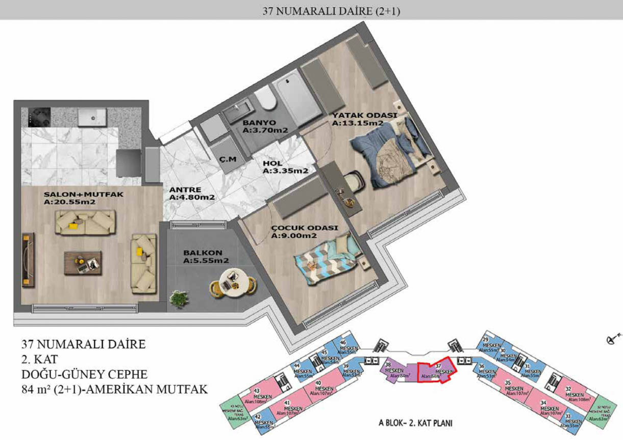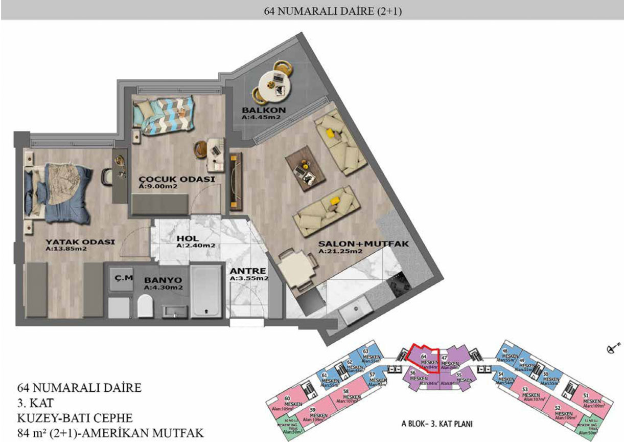 Yaşam alanlarının ölçülü, işlevsel ve estetik dağılımını detaylı şekilde inceleyin.