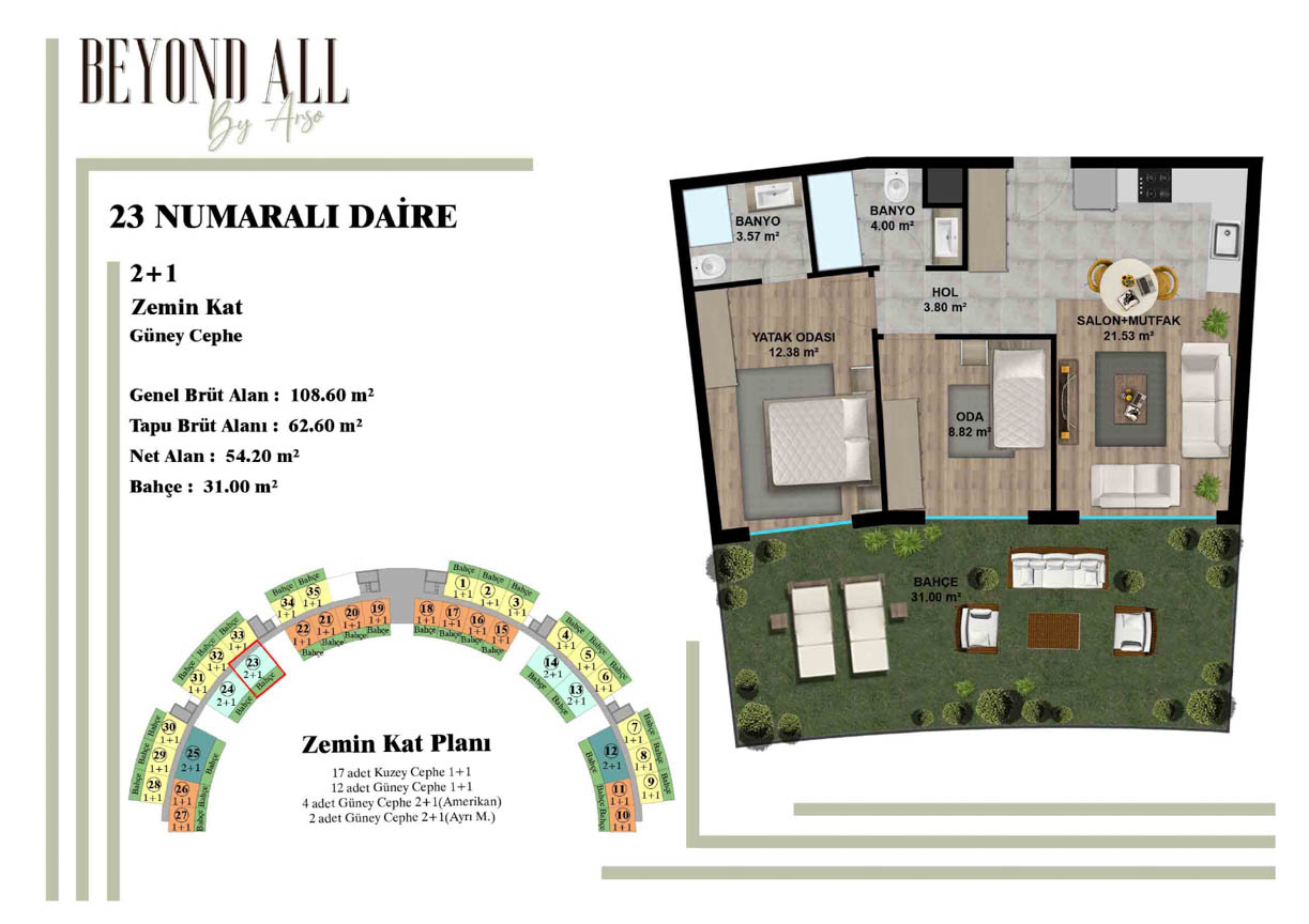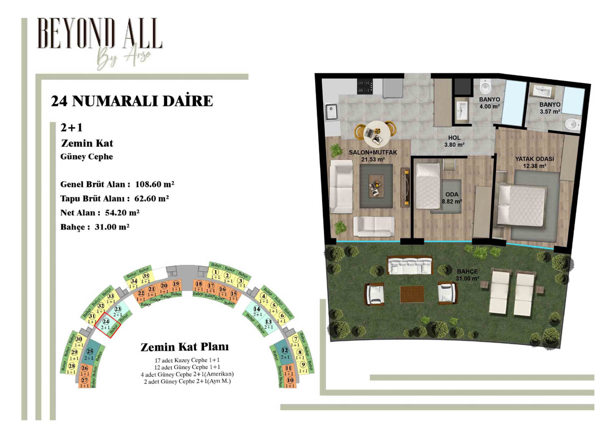 Mutlu anlar, detaylarda gizlidir. Beyond All, her günü huzur ve konforla yaşamanız için en kaliteli ürünlerle tasarlandı. 25.000 m² alanda yükselen yaşam alanı, maksimum güvenlik ve üstün konfor sunarak hayatınıza keyif katıyor.