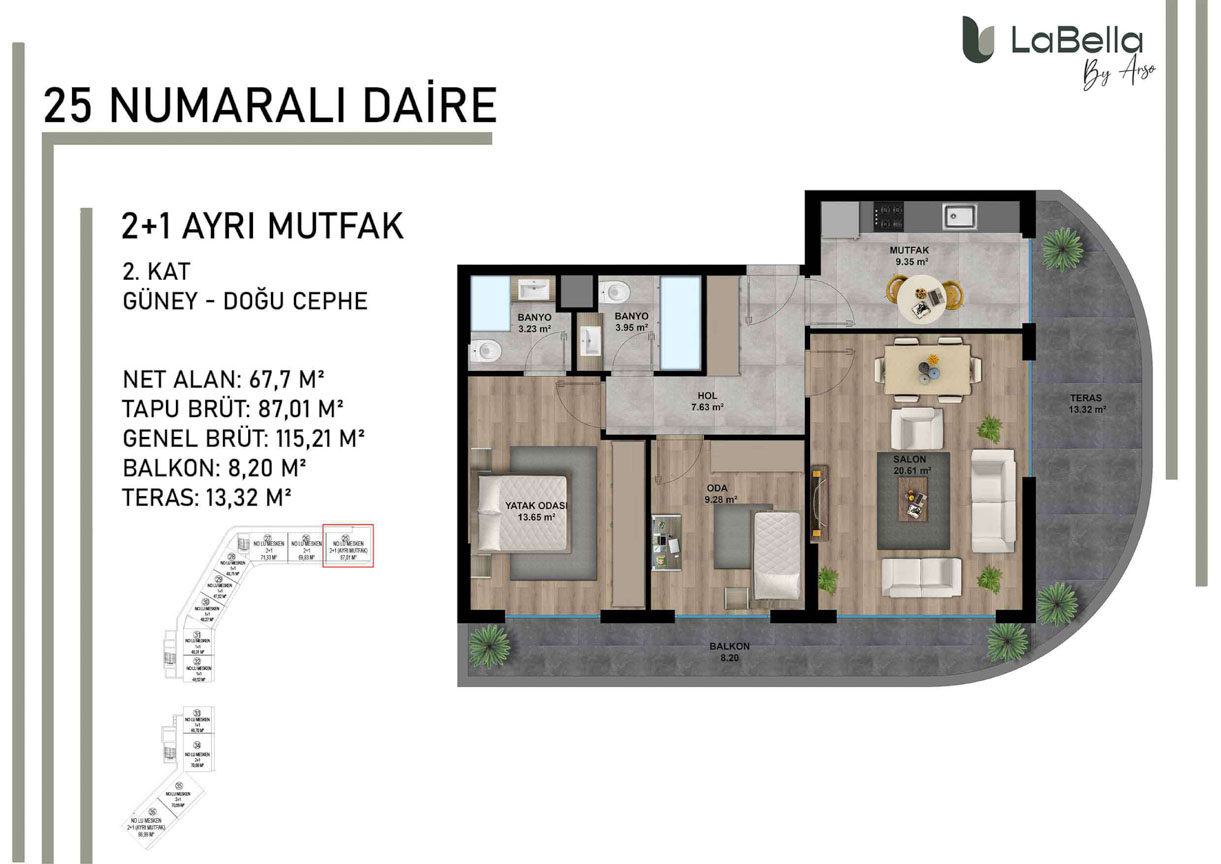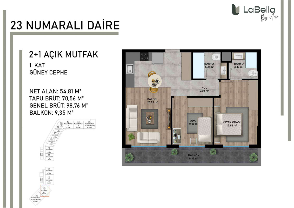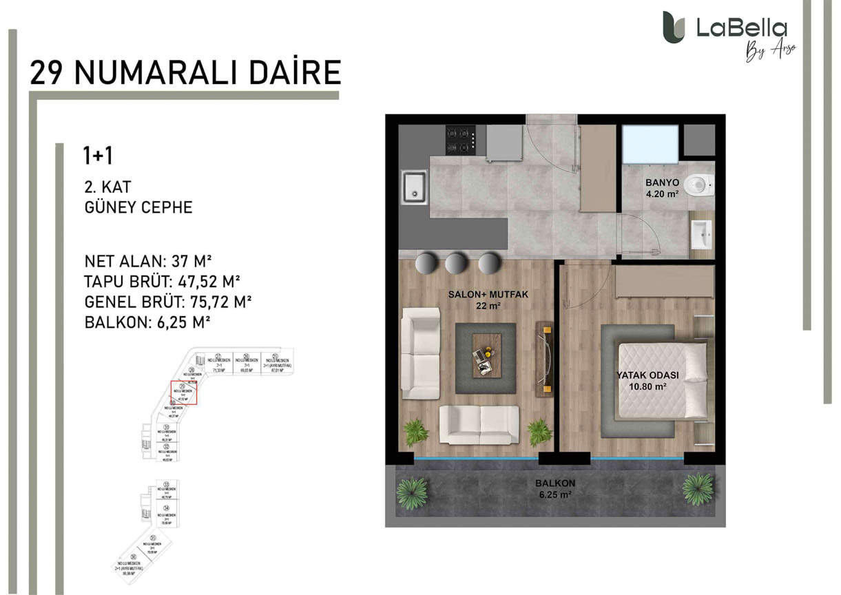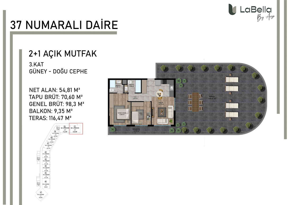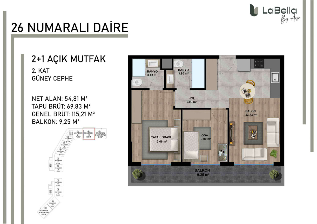 Her günün tadını çıkarmak için gün ışığı size eşlik etmeli! La Bella, ferahlığı her an, konforu sonuna kadar hissetmeniz için tasarlandı. 9.700 m² alana sahip olan La Bella'da standartlarınızı yükselten bir yaşam size çok yakında.