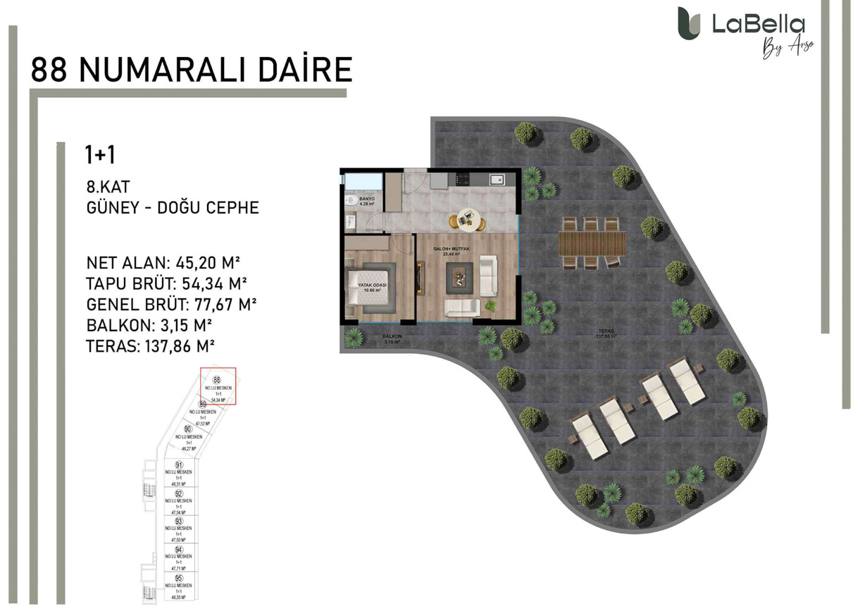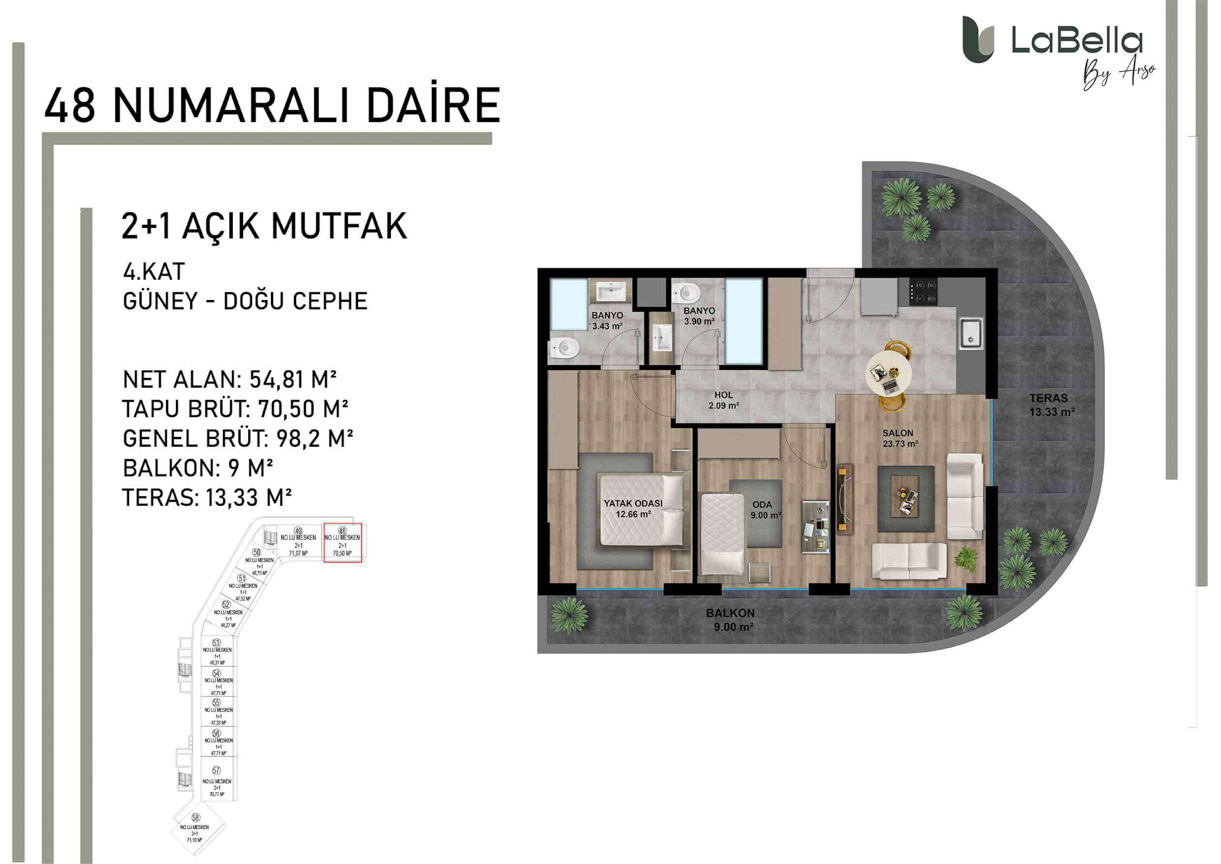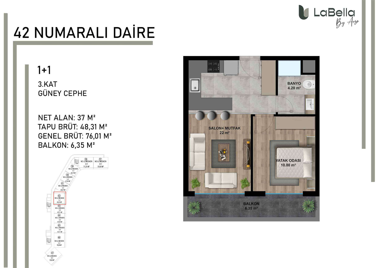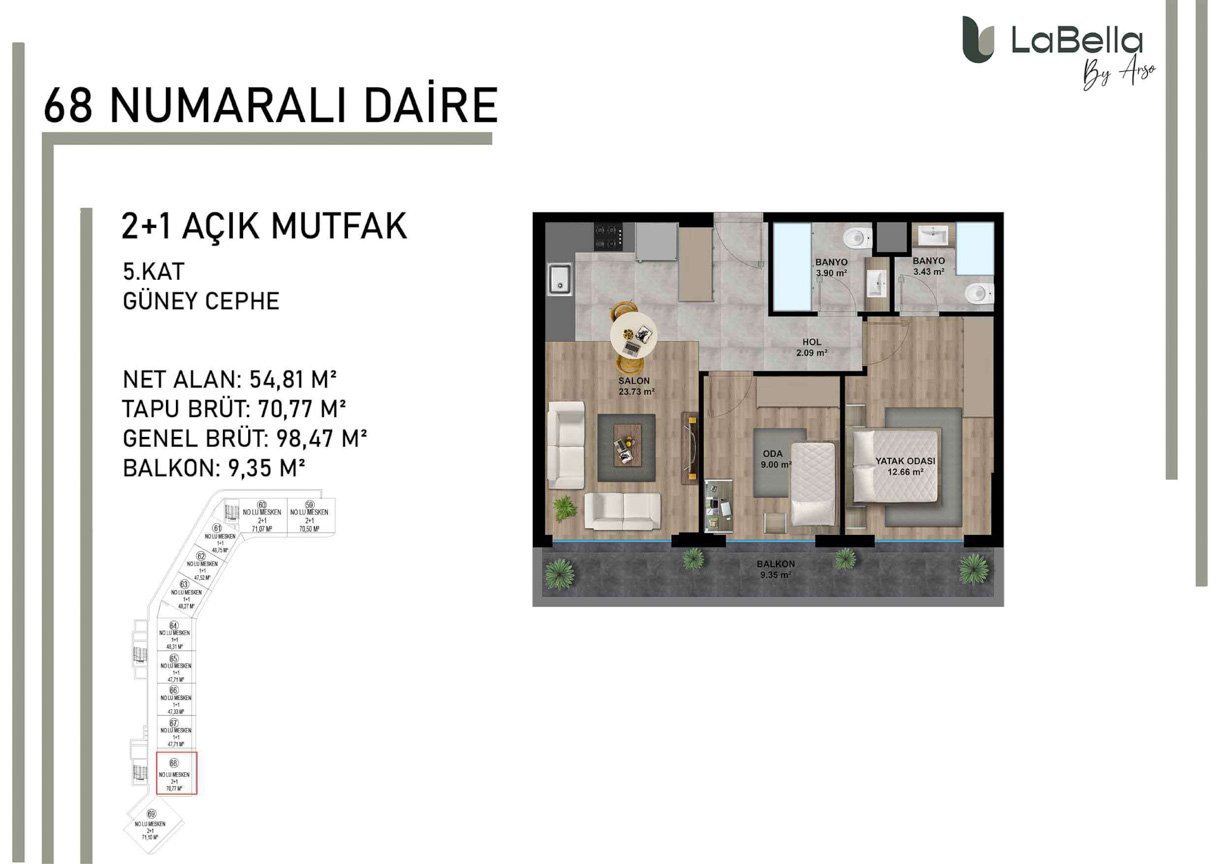 Her günün tadını çıkarmak için gün ışığı size eşlik etmeli! La Bella, ferahlığı her an, konforu sonuna kadar hissetmeniz için tasarlandı. 9.700 m² alana sahip olan La Bella'da standartlarınızı yükselten bir yaşam size çok yakında.