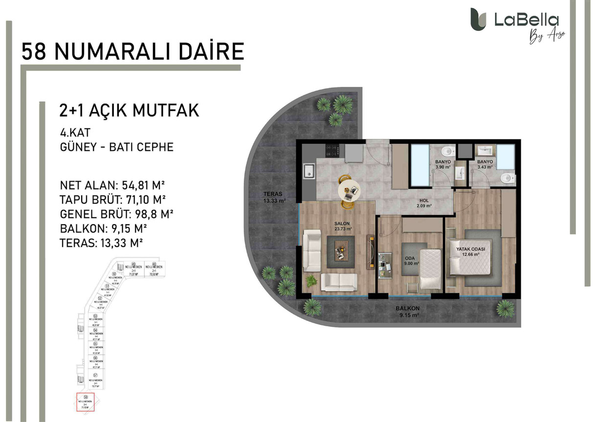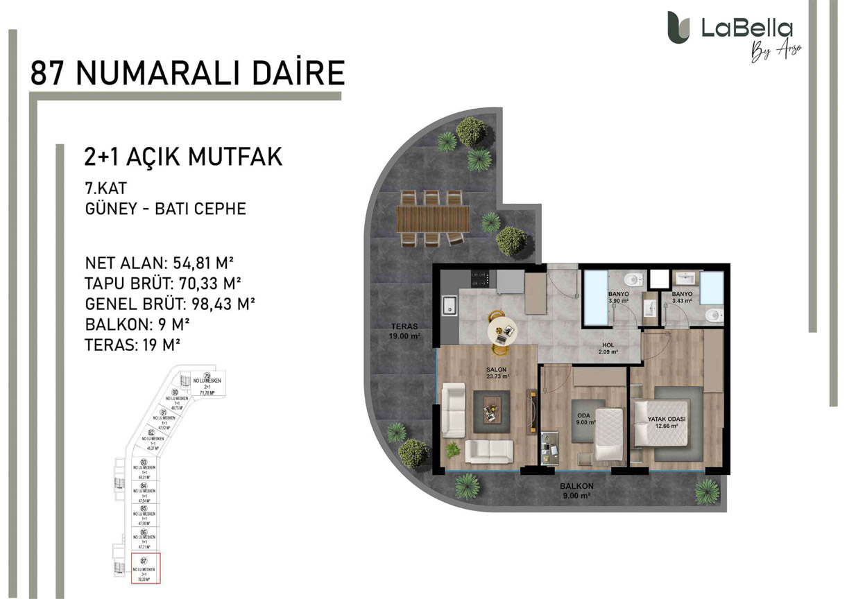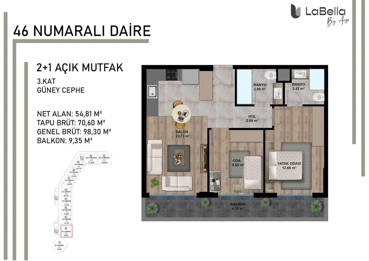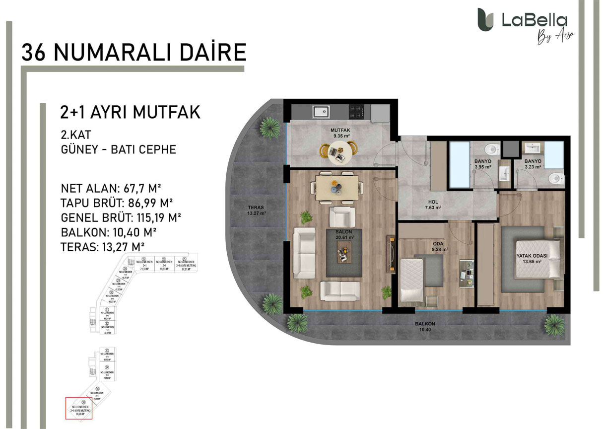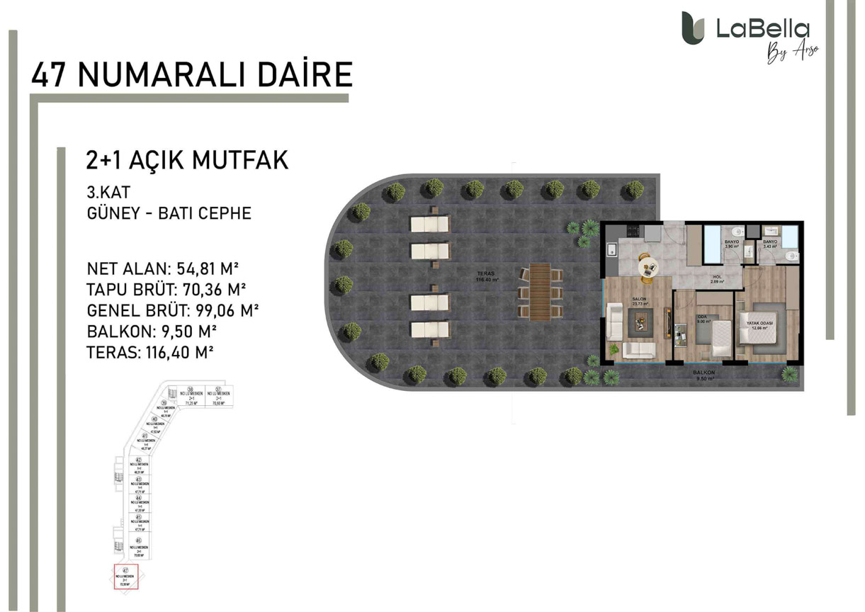 Her günün tadını çıkarmak için gün ışığı size eşlik etmeli! La Bella, ferahlığı her an, konforu sonuna kadar hissetmeniz için tasarlandı. 9.700 m² alana sahip olan La Bella'da standartlarınızı yükselten bir yaşam size çok yakında.